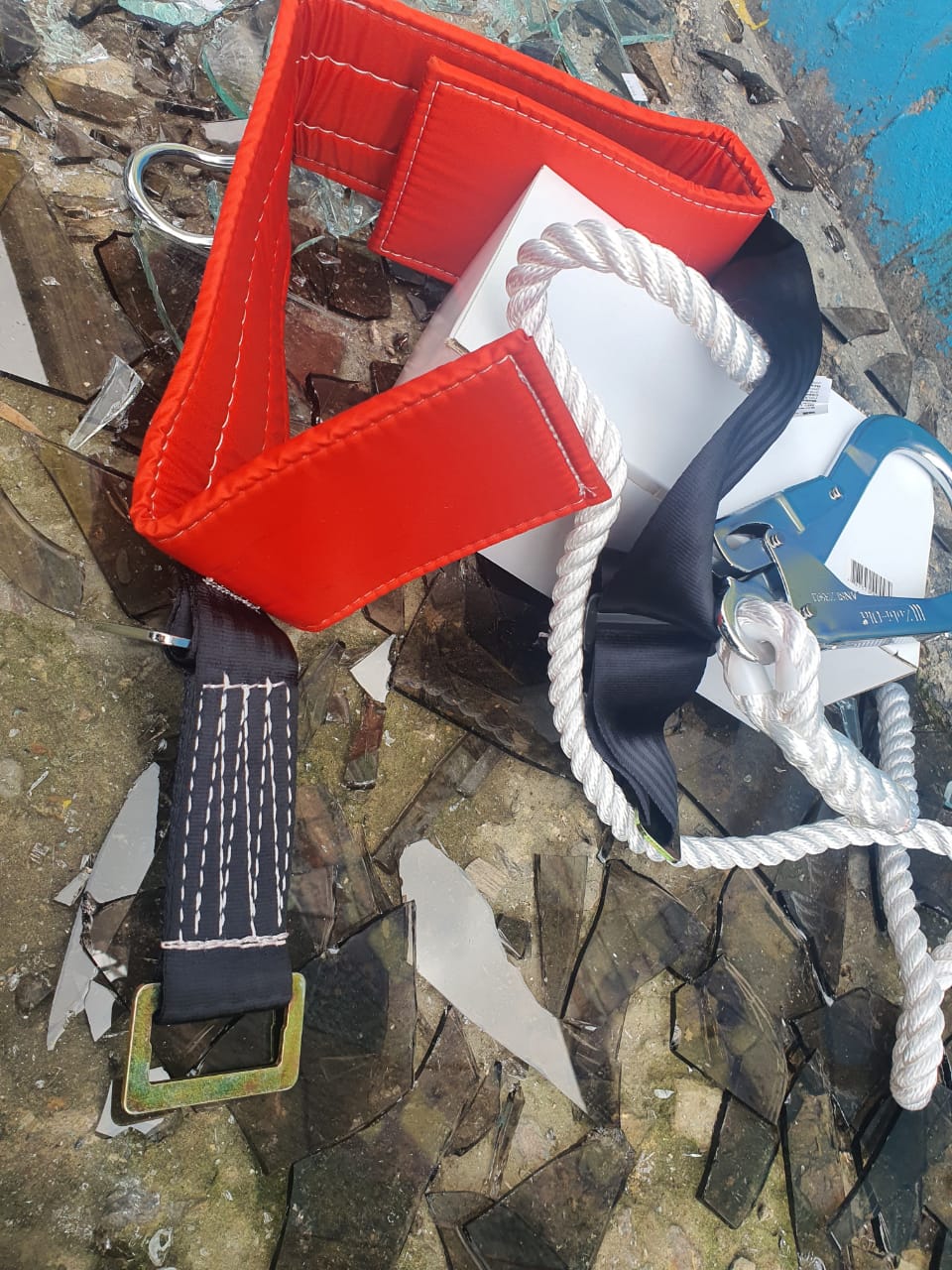 Equipo de protección personal en forma de banda que se ciñe a la cintura del trabajador. Lleva un anillo «D» que sirve para enganchar el extremo del cable de seguridad o bandola.