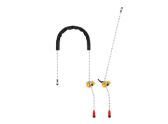 🔹 En doble: Desde los puntos de enganche laterales del arnés, ideal cuando el usuario trabaja apoyado sobre los pies. Proporciona mejor reparto de la carga en el cinturón del arnés. La regulación se realiza con la leva pivotante.