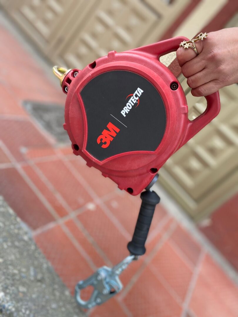- Gancho de seguridad giratorio con cierre automático e indicador de impacto.